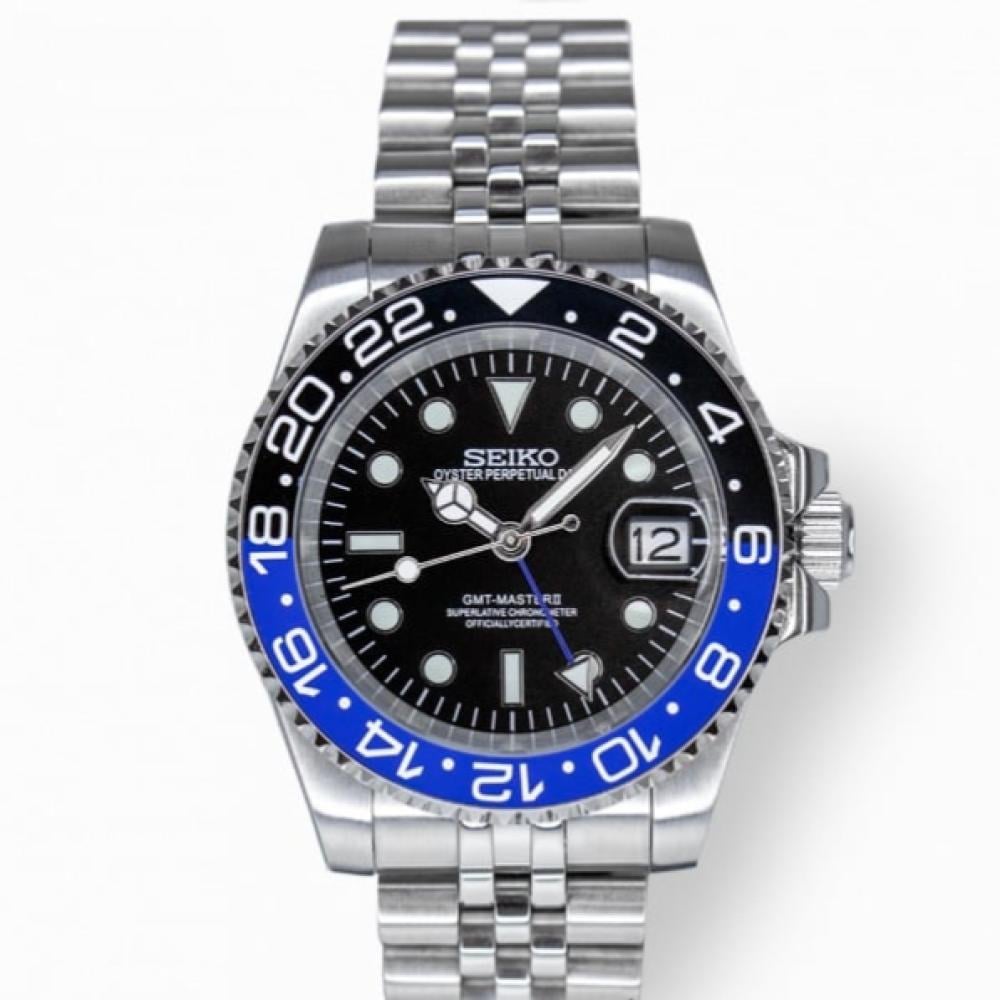 •الحركة: أوتوماتيكية NH34 يابانية – بدقة فائقة ووظيفة توقيت مزدوج (GMT)